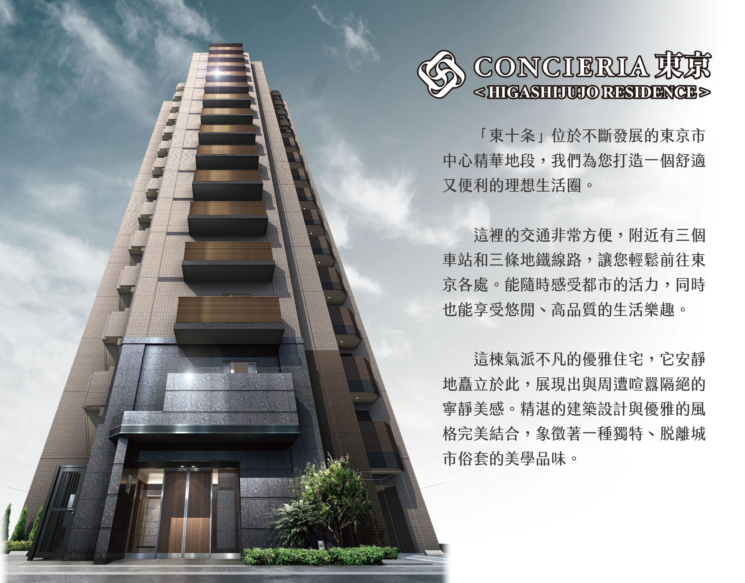 交通資訊JR京浜東北線「東十條」站 徒步5分鐘 東京メトロ南北線「王子神谷」站 徒歩10分鐘 JR埼京線「十條」站 徒步15分鐘 建案地點東京都北区東十条四丁目8番12 使用分區商業地域、近鄰商業地域 土地面積529.71㎡ 專有面積25.26㎡~25.40㎡ 構造鋼筋混凝土造 地上15樓 總戶數66