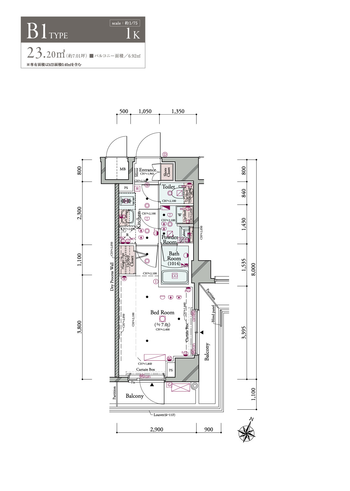 室內面積: 23.20㎡