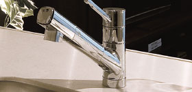 檯面使用美觀易維修的人工大理石。呈現出高質感的廚房。